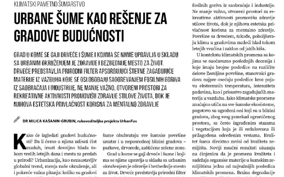 На  иницијативу Фонда за науку Републике Србије у магазину Biznis.rs представљен је наш пројекат.  У овом ауторском тексту руководитељка пројекта др Милица Кашанин-Грубин, читаоцима је приближила значај и проблематику урбаних шума, и представила новоосновану лабораторију за климатске симулације која би и након завршетка пројекта требала да буде основ за успостављање мреже истраживача сличних интересовања.